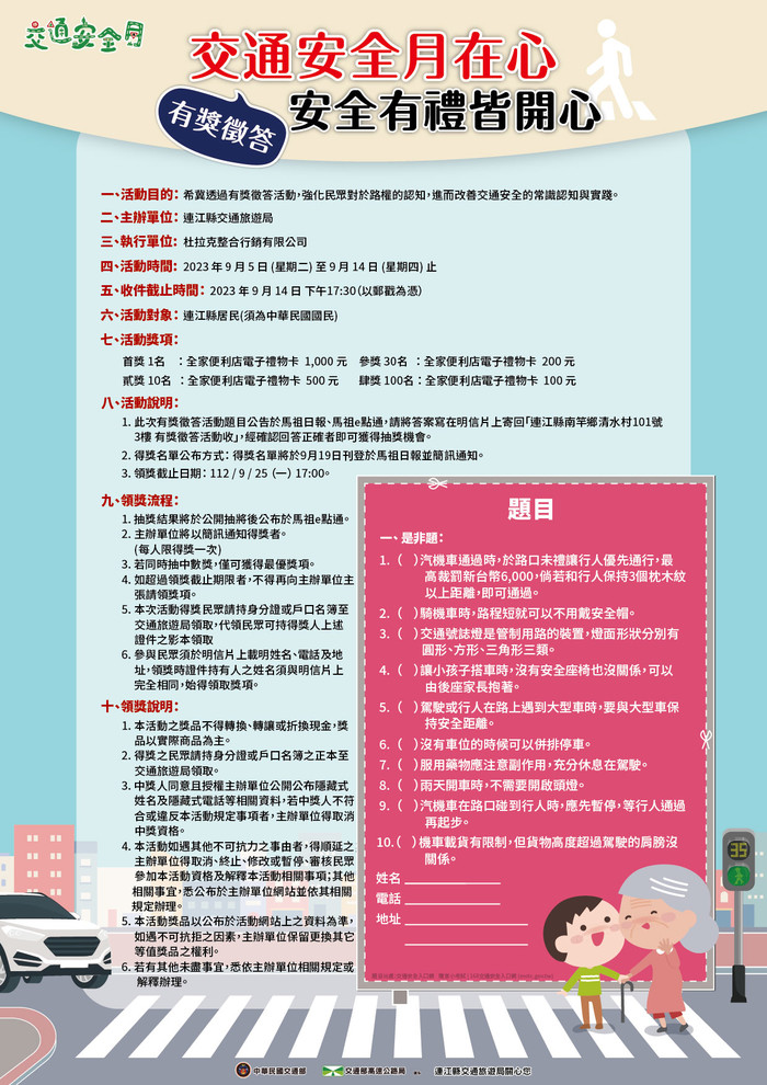 交通安全月有獎徵答活動 --閱讀人次 : 1861