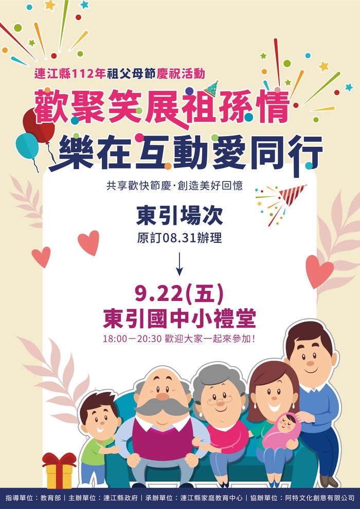 祖父母節慶祝活動 東引場活動通知 --閱讀人次 : 559 112年祖父母節慶祝活動 東引場活動通知