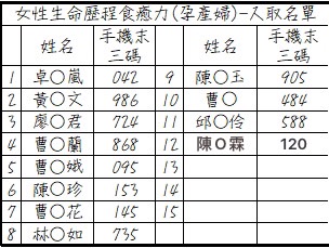優先對象:在地女性 (備孕及孕產婦優先)