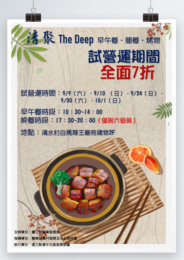 為了增加地方休憩空間,清水社區發展協會現在於周末時段,也開始供餐囉!!!