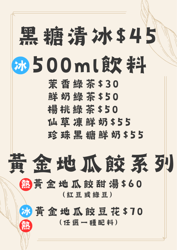 冰/熱-地瓜餃豆花一碗$70
