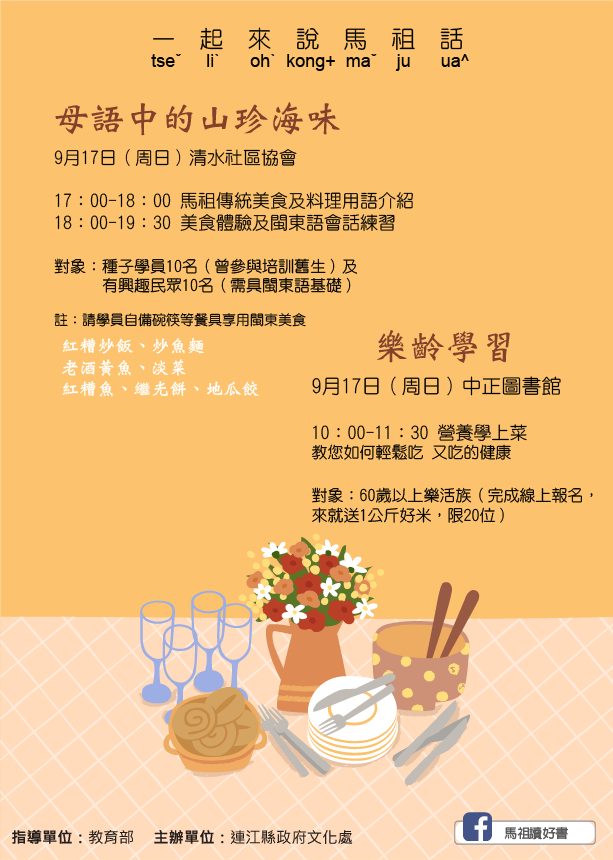 「母語中的山珍海味」,邀請陳高志老師講解馬祖傳統美食以及料理方式,配合著閩東語的教學,