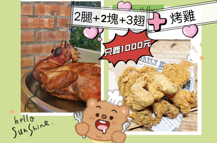 2腿+2塊+3翅+甕烤全雞1隻再加贈一罐大可樂