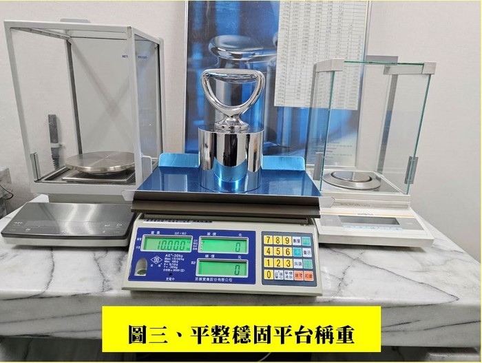 1. 磅秤是否放置於平整、堅固、無高低差或無傾斜之平台上進行稱重(如相關照片圖三)。