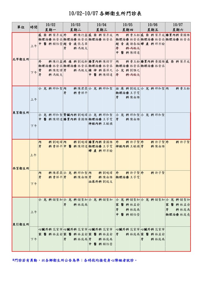 本週10/5北竿衛生所原排定之牙科診次取消,共計2診次,造成不便,敬請見諒。