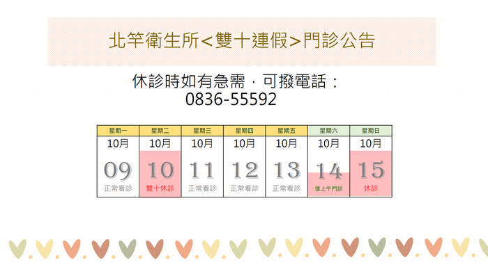 北竿衛生所雙十門診公告