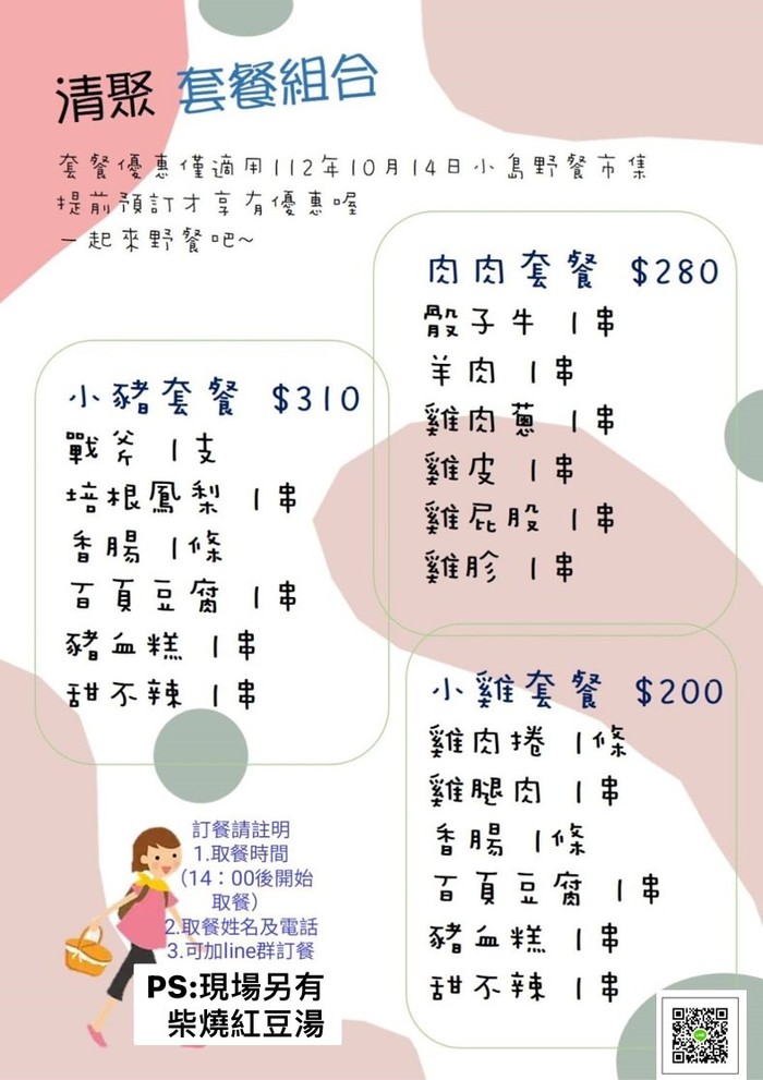 為了響應活動,清聚推出燒烤野餐組,揪划算喔!