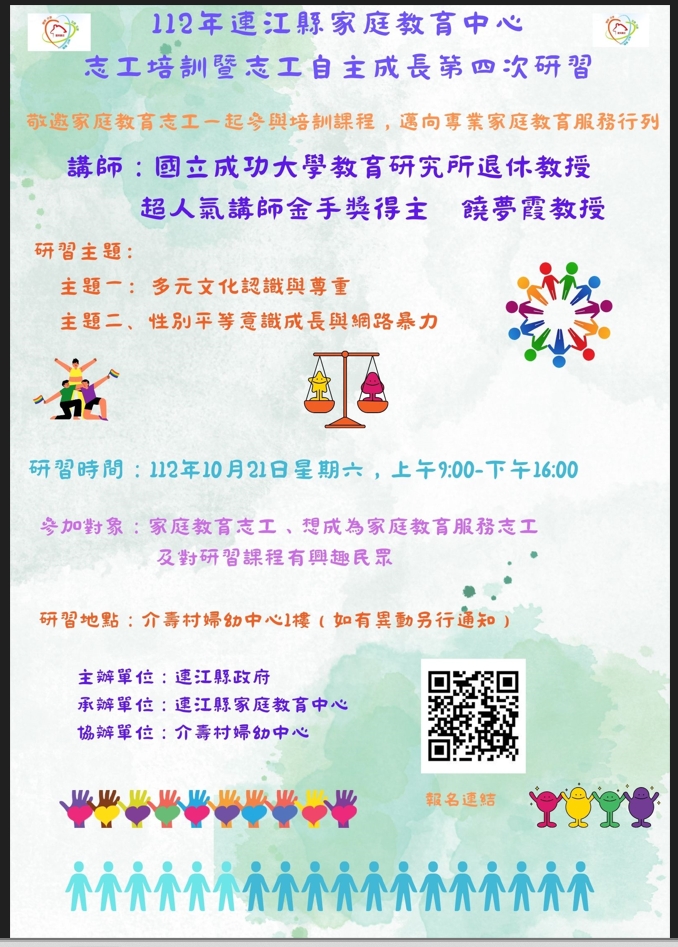 112年連江縣家庭教育志工在職進修暨召募志工培訓課程