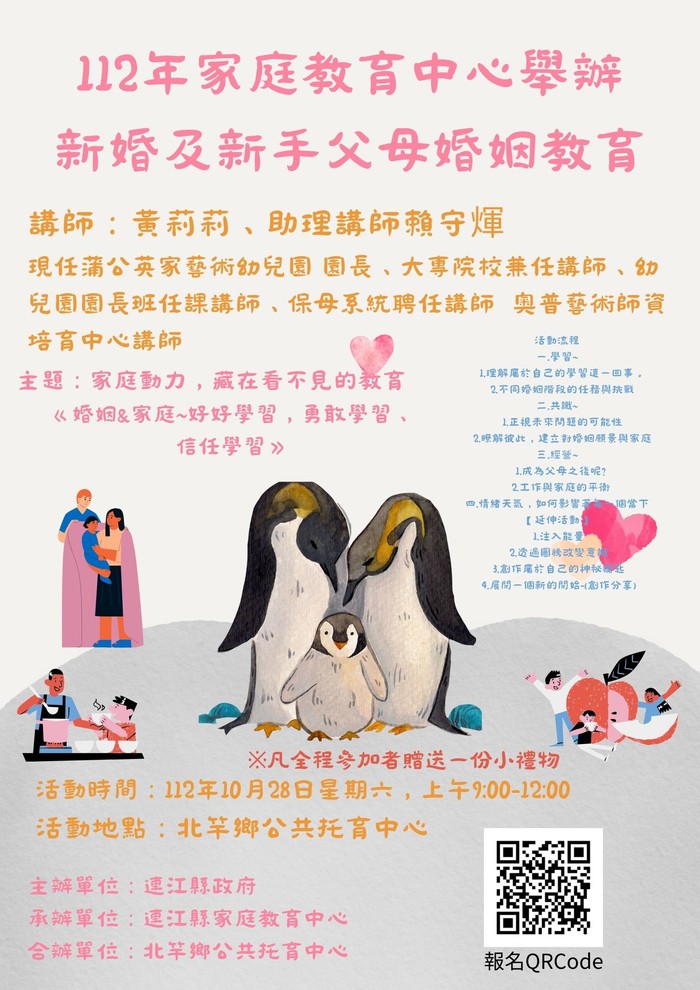 新婚及新手父母婚姻教育 --閱讀人次 : 844 112年家庭教育中心舉辦「新婚及新手父母婚姻教育」活動