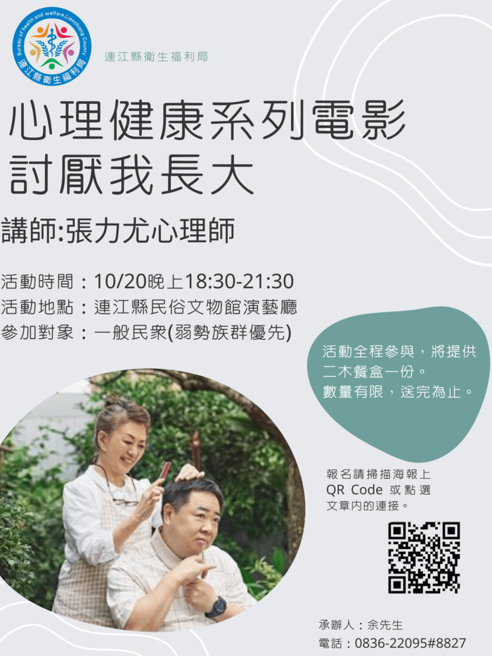 特邀潛意心理諮商所 張力尤所長擔任與談人,電影完畢後會進行有獎徵答,歡迎民眾踴躍參與。