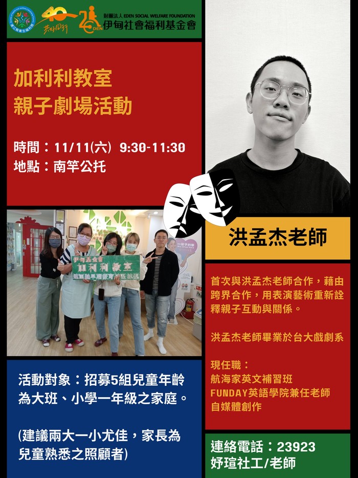 連絡電話:加利利幼兒教室/0836-23923/0905-315-871 (妤瑄社工)