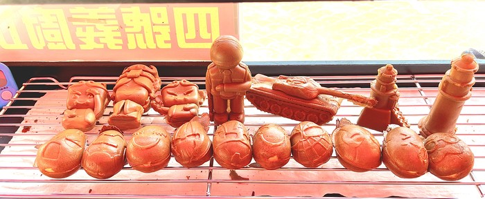 四號義廚坊為馬祖村在地知名義大利麵餐廳,以四鄉五島戰地風貌及當地信仰,軍民一家同島一命等特殊造型製作成模具。(媽祖娘娘、千里眼、順風耳、軍、戰車、東莒燈塔、東引燈塔)。10種不同萬聖節🎃表情搗蛋變裝造型模型