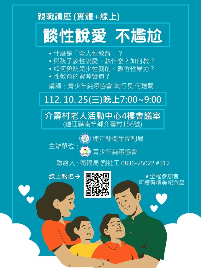 邀請您~~參與112年10月25日晚上7點「如何與青少年談愛說性」親職講座