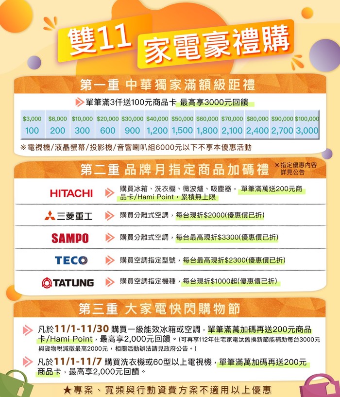 中華電信- 雙11促銷活動資訊 --閱讀人次 : 2062 活動期間:112/11/1~112/11/12