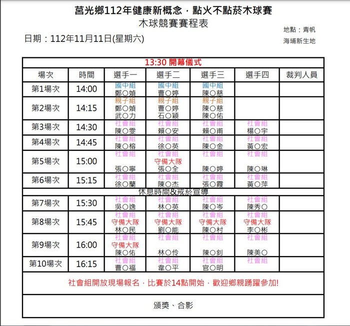 莒光鄉戒菸盃木球、羽球賽前公告 --閱讀人次 : 705 莒光鄉戒菸盃木球賽賽前公告