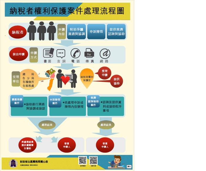 1.稅捐爭議、溝通與協調、2.申訴陳情、3.提供救濟、詢問及協助~~可尋求納保官協助
