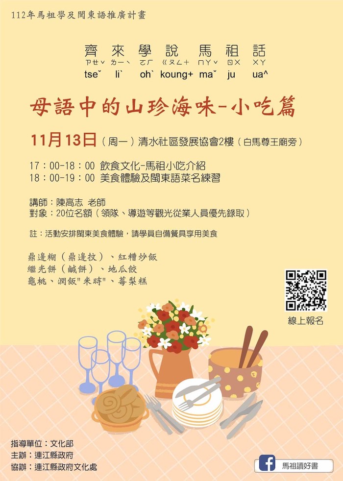 課程歡迎觀光從業人員參與,讓我們一起介紹推廣馬祖飲食文化