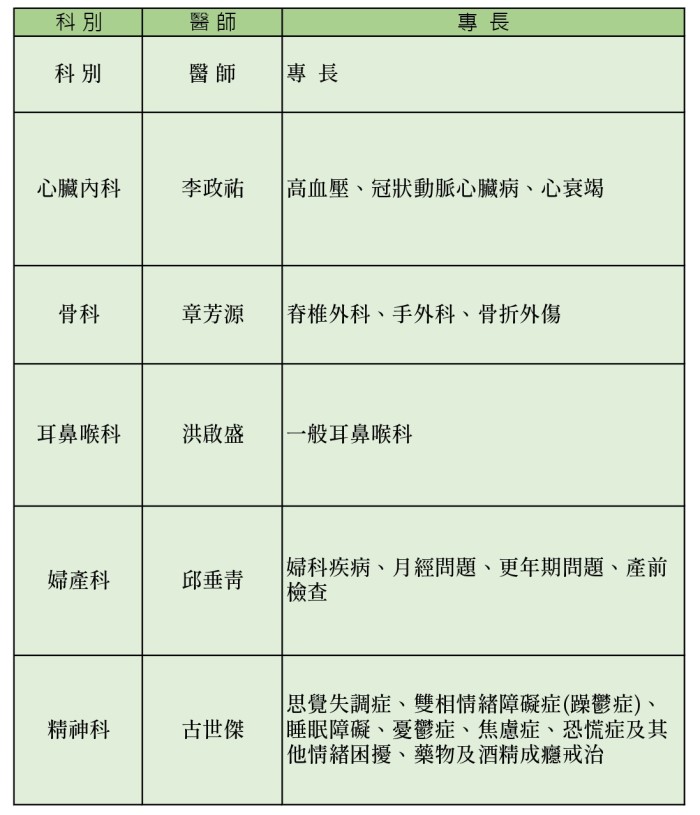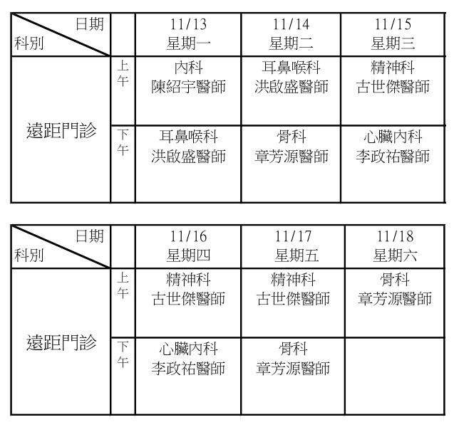 本週衛生所門診表/遠距門診/支援醫師