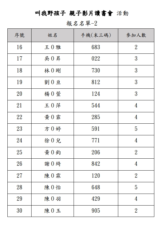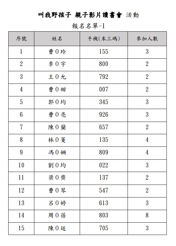 叫我野孩子-親子影片讀書會 報名名單 --閱讀人次 : 1014 全國家長團體聯盟及家庭教育中心邀請您與家人一同參與(叫我野孩子-親子影片讀書會)活動,以下為活動訊息: