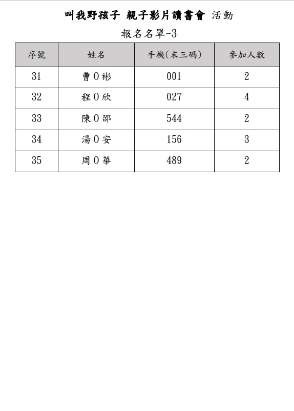 報名名單: