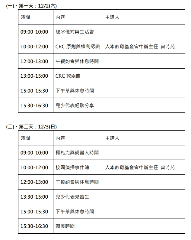 12/2-3 連江縣兒少培力工作坊 --閱讀人次 : 649 1.時間 : 112年12月2日(六)至3日(日)