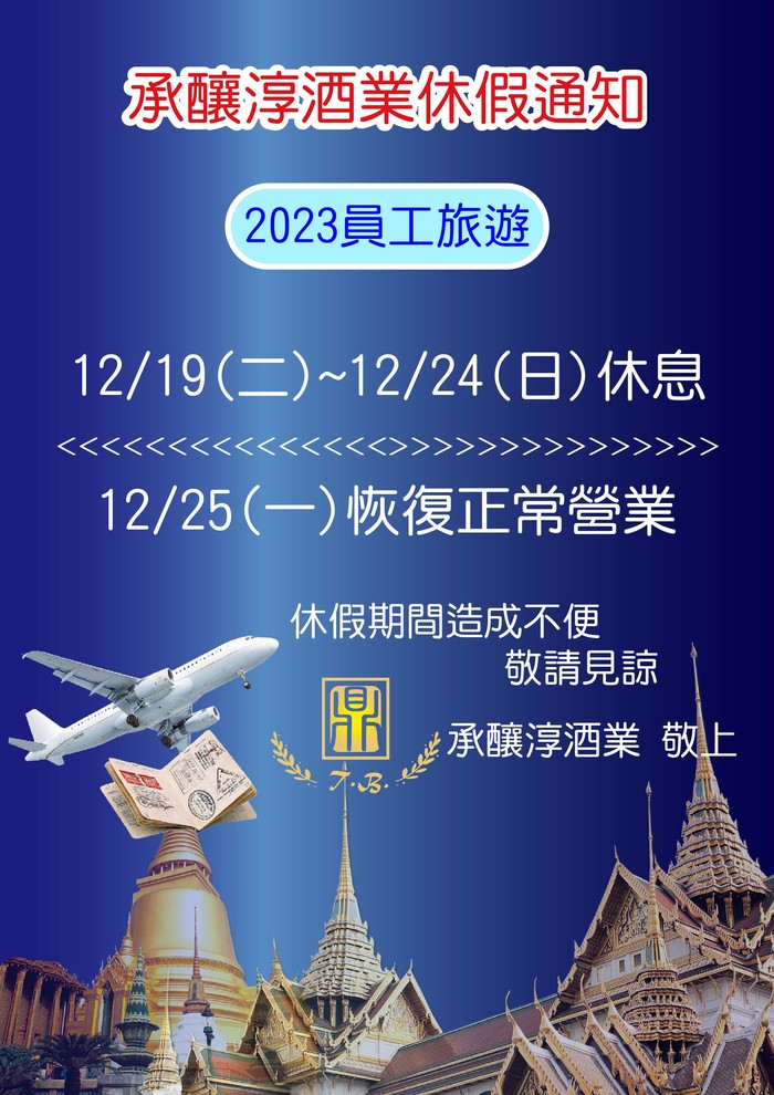 承釀淳酒業~休假通知