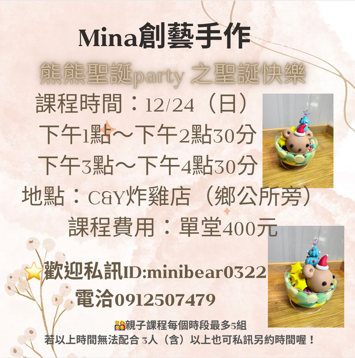 Mina創藝手作 12/24開課啦!