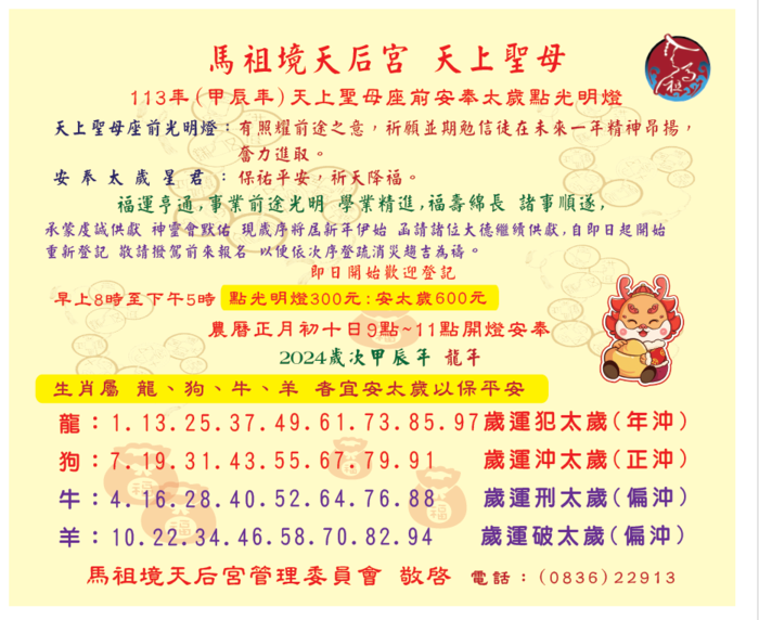 馬祖境天后宮113年(甲辰年)點燈祈福