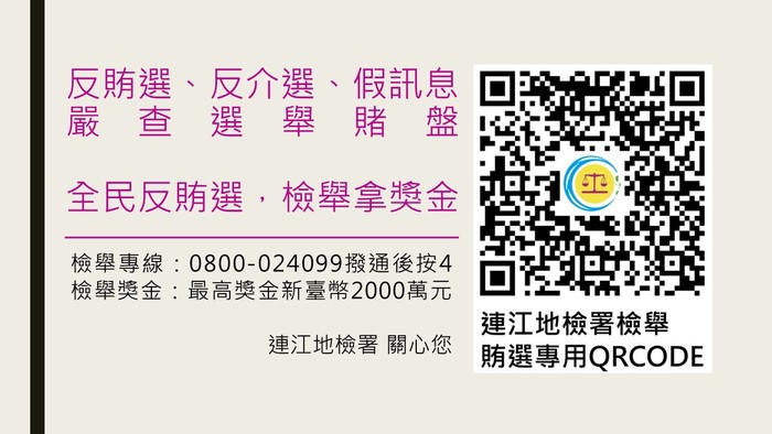 連江地檢署反賄選LINE一對一帳號檢舉專線