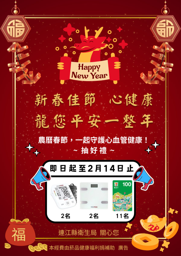 新春佳節 心健康 抽獎活動開始囉!!! --閱讀人次 : 1369 🧨新春佳節 心健康 龍您平安一整年🧨