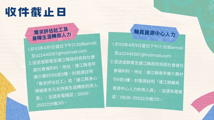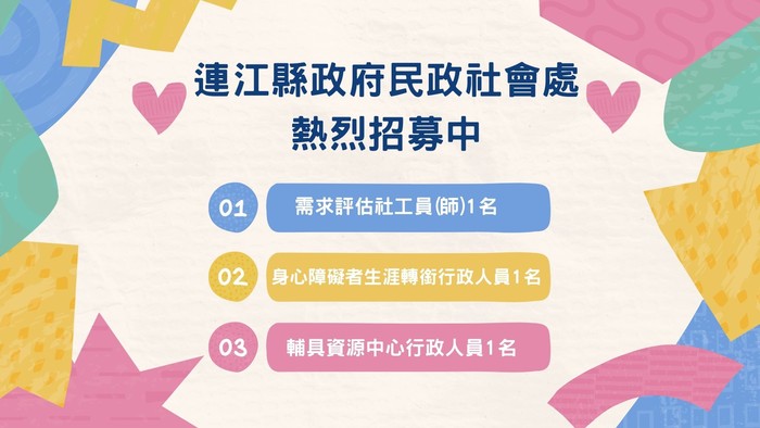 民政社會處徵選社工員(師)1名及約用人員2名