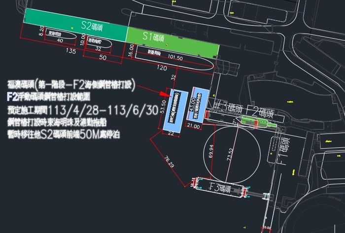 後續將接續拆除既有F2及F1浮動碼頭,全面展開作業。直到完成所有工程。