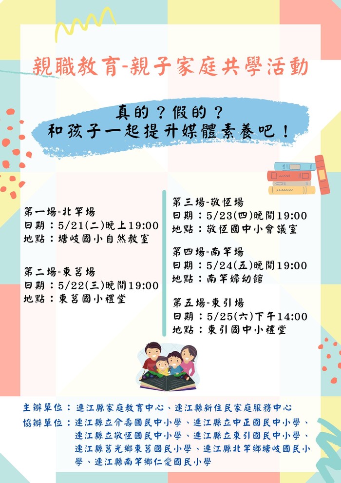家教中心親子共學 尚有名額 --閱讀人次 : 950 課程名稱:真的?假的?---和孩子一起提升媒體素養吧!