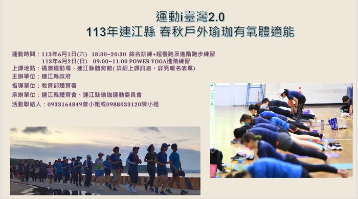 運動i臺灣2.0 瑜珈有氧體適能 --閱讀人次 : 1120 運動i臺灣2.0 113年連江縣體育會瑜珈有氧體適能【實體課程】來了喔!!!