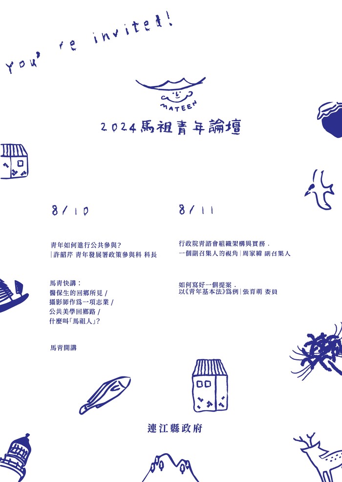 2024馬祖青年論壇 --閱讀人次 : 1137 大家好!歡迎今年八月,只要是16-45歲的馬祖青年,一起參與論壇,也歡迎轉傳給身邊的朋友❤️