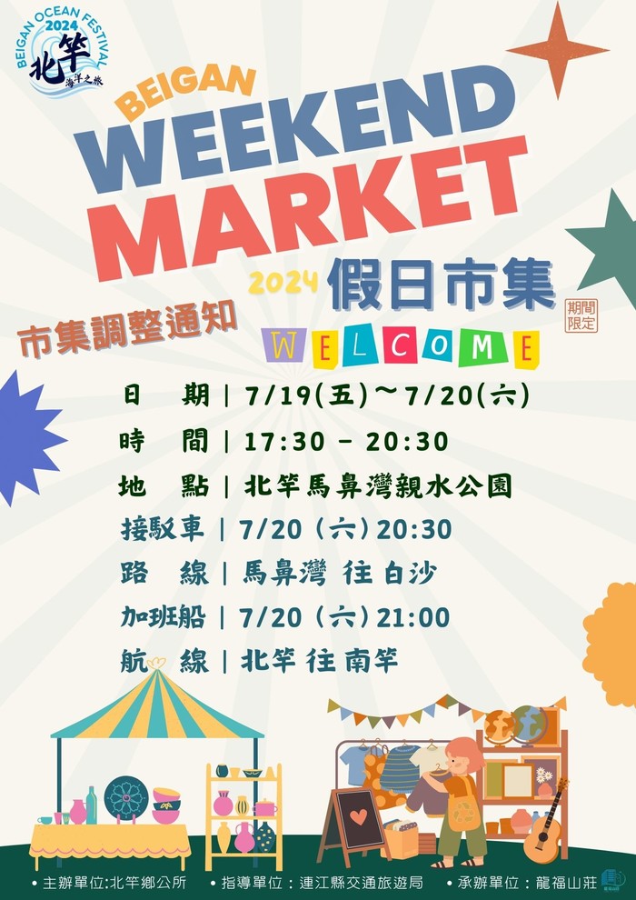 本週假日市集舉辦時間調整為7/19(五)、7/20(六)!!