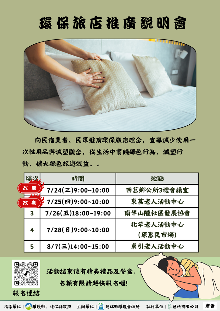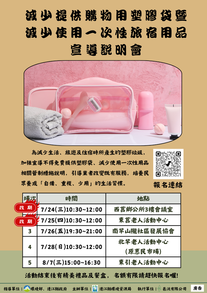舉辦的 減少提供購物用塑膠袋暨減少使用一次性旅宿用品說明會 與 源頭減量環保旅店說明會