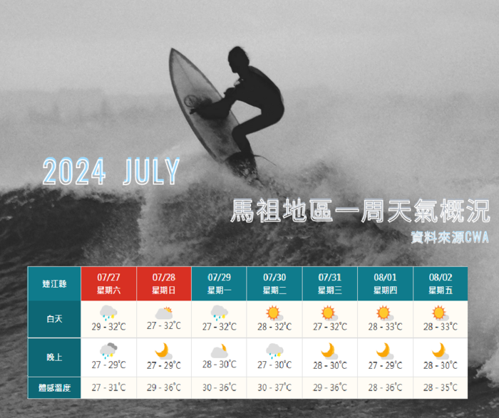 7/27~一周天氣概況~8/2 --閱讀人次 : 861 大家好,回顧一下凱米颱風馬祖地區的實際觀測