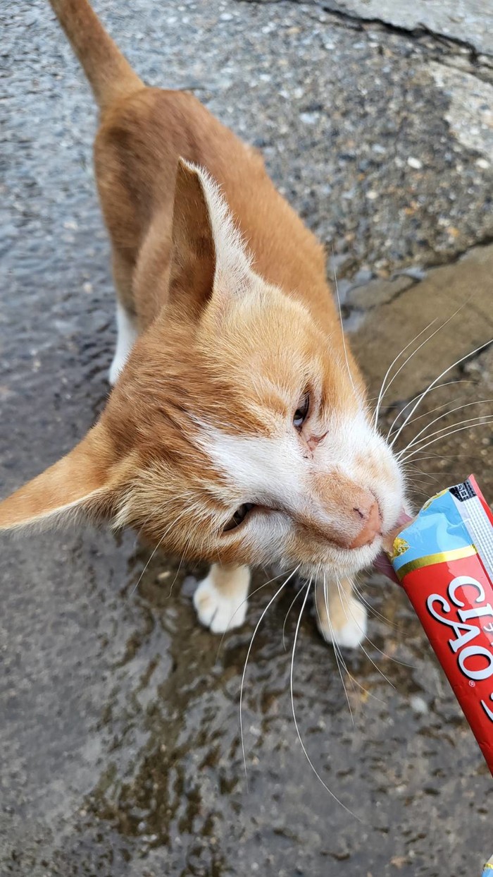 7/27馬港老人活動中心附近出現一隻橘白色已剪耳貓咪