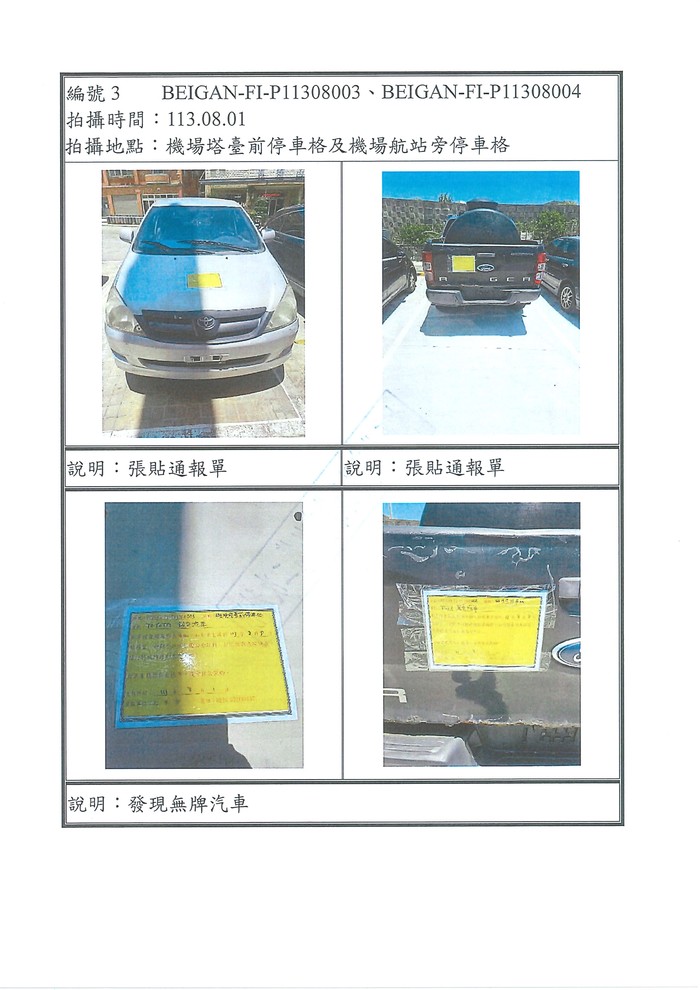 查報機場周邊停車格無牌車輛廢棄物一批