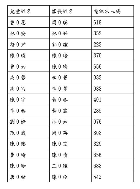 3.若以下正取名單之參與孩童,有無法參加者,請於8月9日(五)前致電通知中心工作人員,以利後續安排候補名單學童參加。