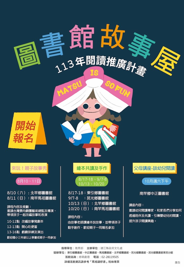 8/10北竿8/11南竿親子故事秀 --閱讀人次 : 724 閱讀推廣【親子故事秀】邀請到台灣知名景向劇團藝術總監和導演,