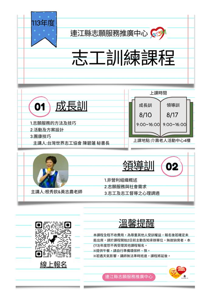 未報名的志工夥伴抓緊時間報名喔~~一年只辦理一梯次