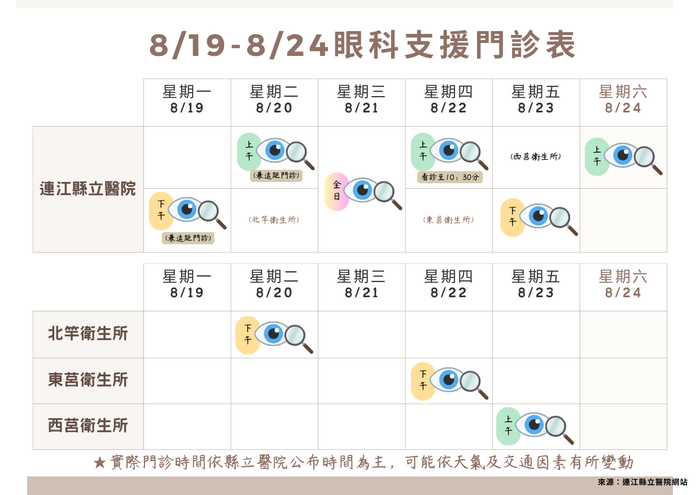 8/19-8/24預計有眼科醫師支援門診,趕快把握暑假空檔篩檢去