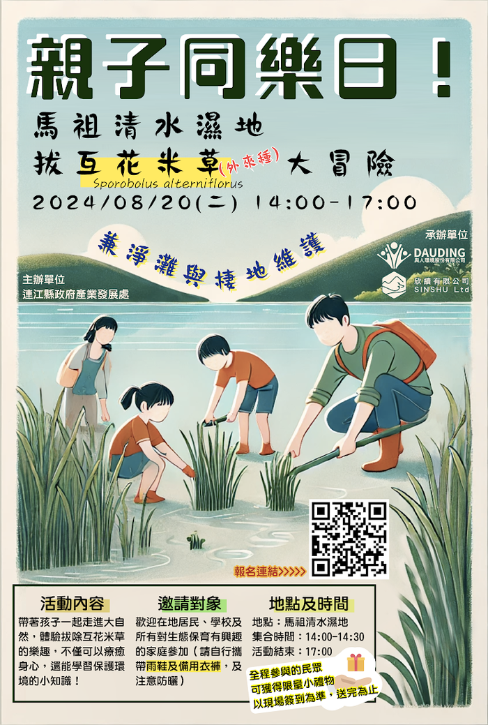 馬祖清水濕地拔互花米草大冒險 --閱讀人次 : 1125 「2024/08/20 親子同樂日-馬祖清水濕地拔互花米草大冒險」活動