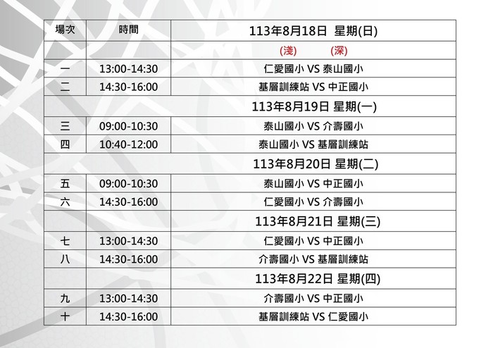 五、比賽日期:113年8月18日至8月22日(國小男子組)