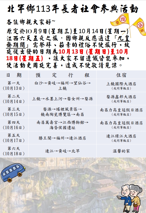 北竿鄉113年長者社會參與活動延期 --閱讀人次 : 918