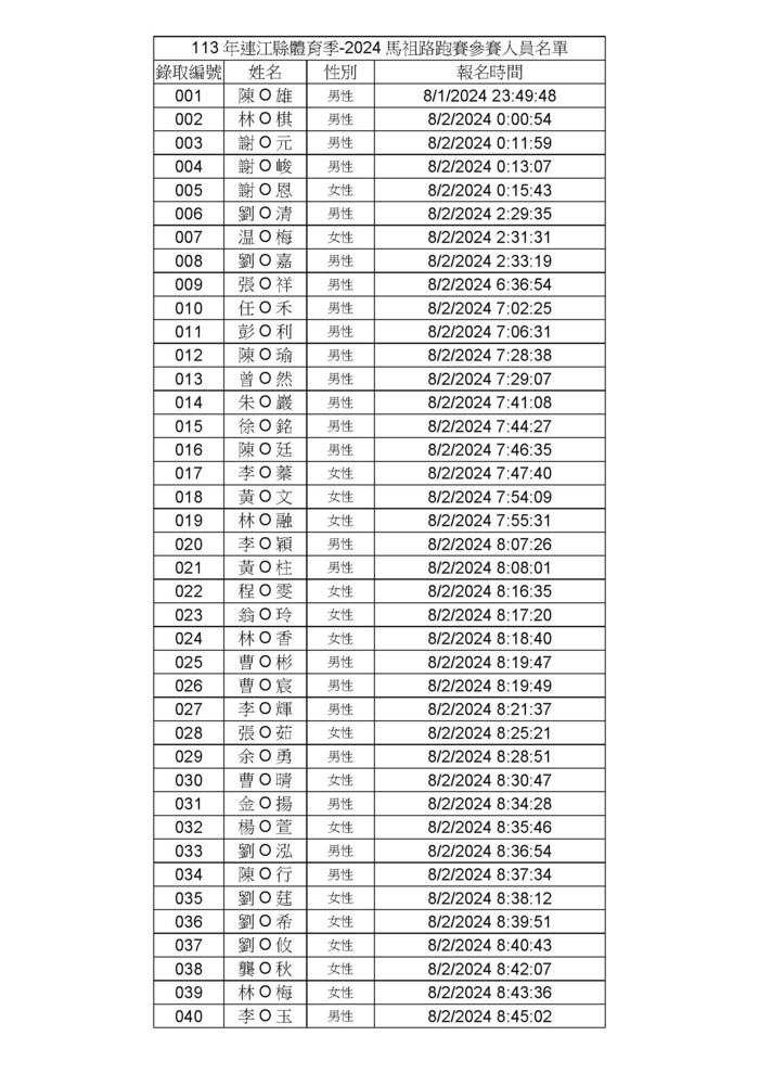 馬祖路跑參賽人員10/6請準時報到 --閱讀人次 : 1462 113年度【連江縣體育季】-2024馬祖路跑賽