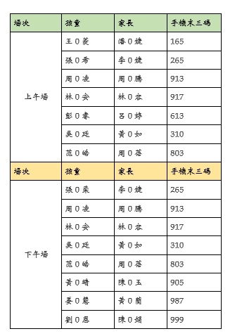 以下為優先報名的家庭名單: