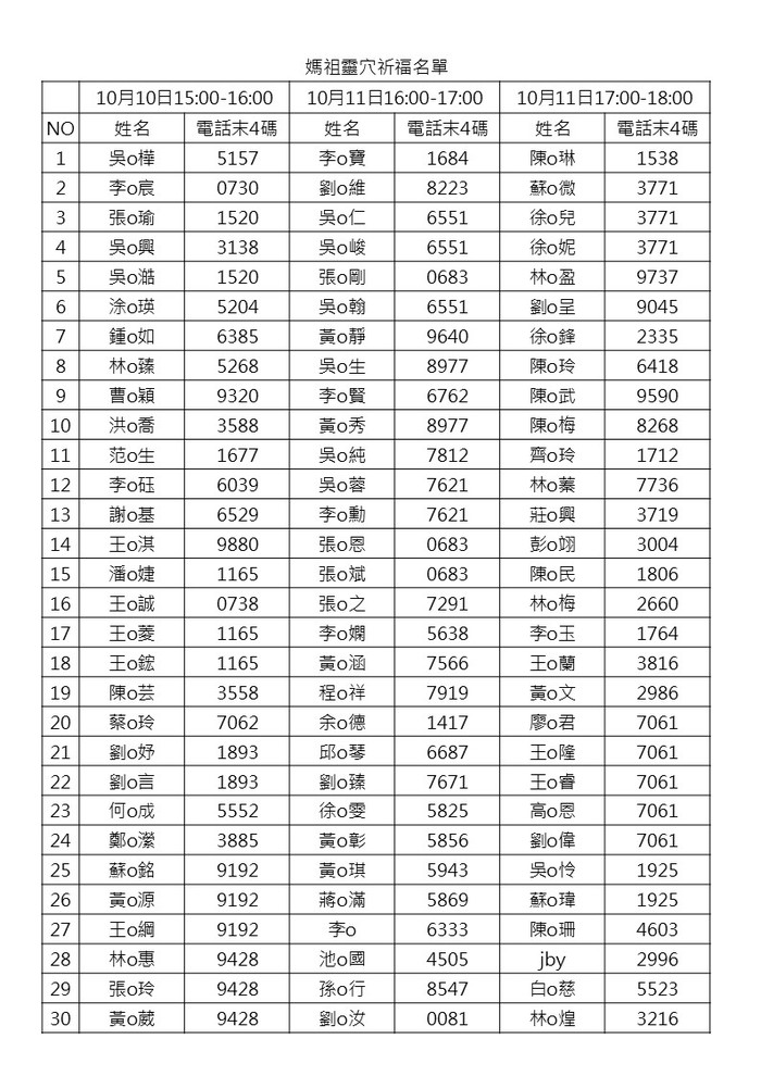 參加名單及手機末4碼如下。